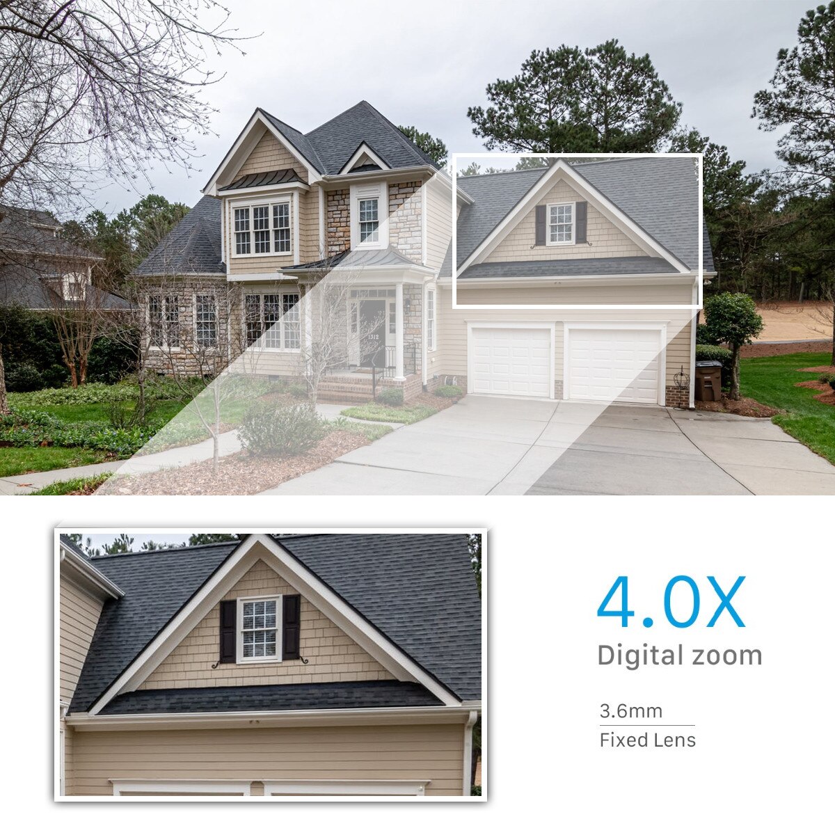 You can monitor your home in all directions. No angle can be out of the surveillance. Digital zoom (4x) function allows you to zoom in to see more details and zoom out to see the entire field of view.